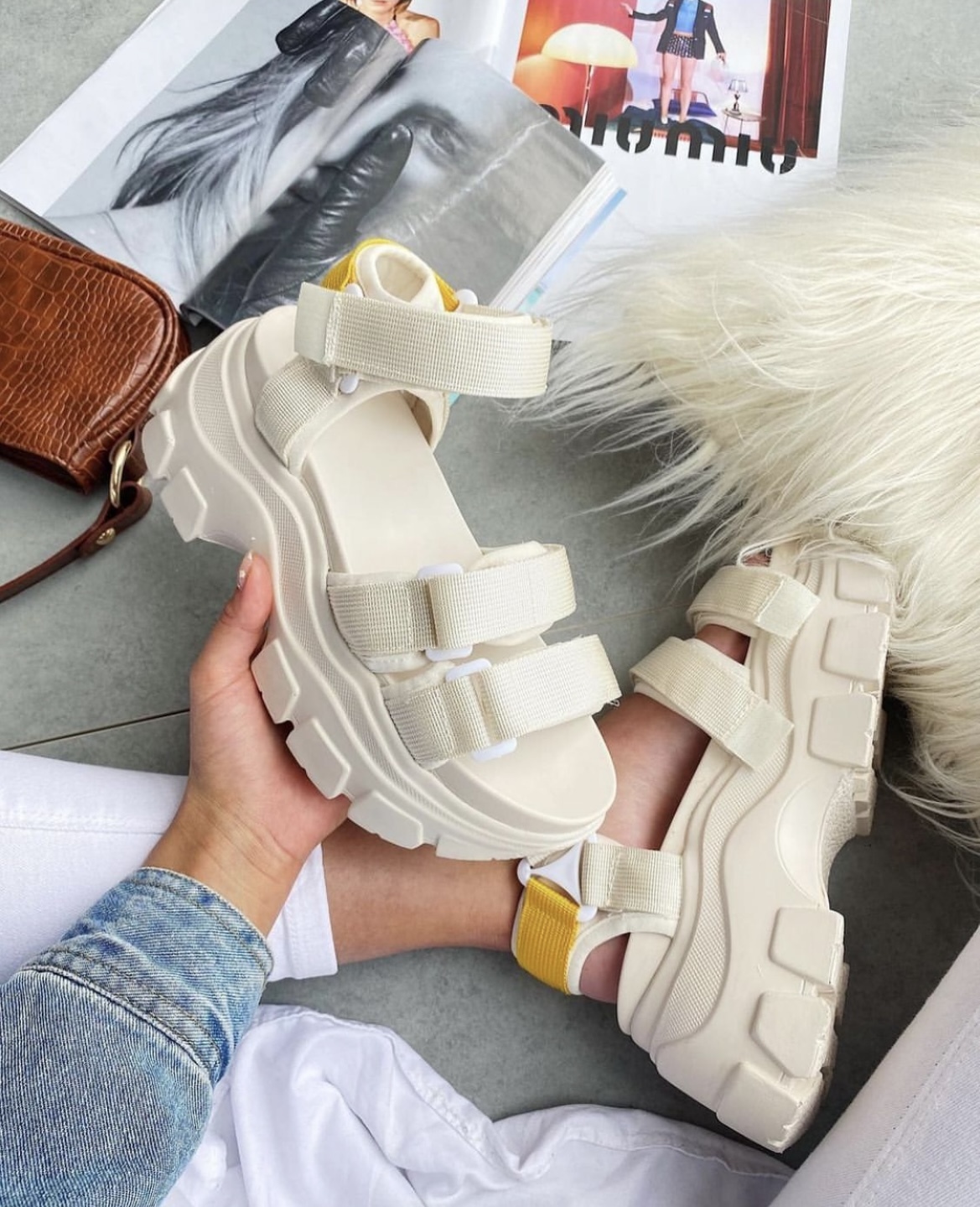 Сандалии бежевые на объемной подошве - 40 (25 см) - Искусственная кожа - Бежевый - Лето -